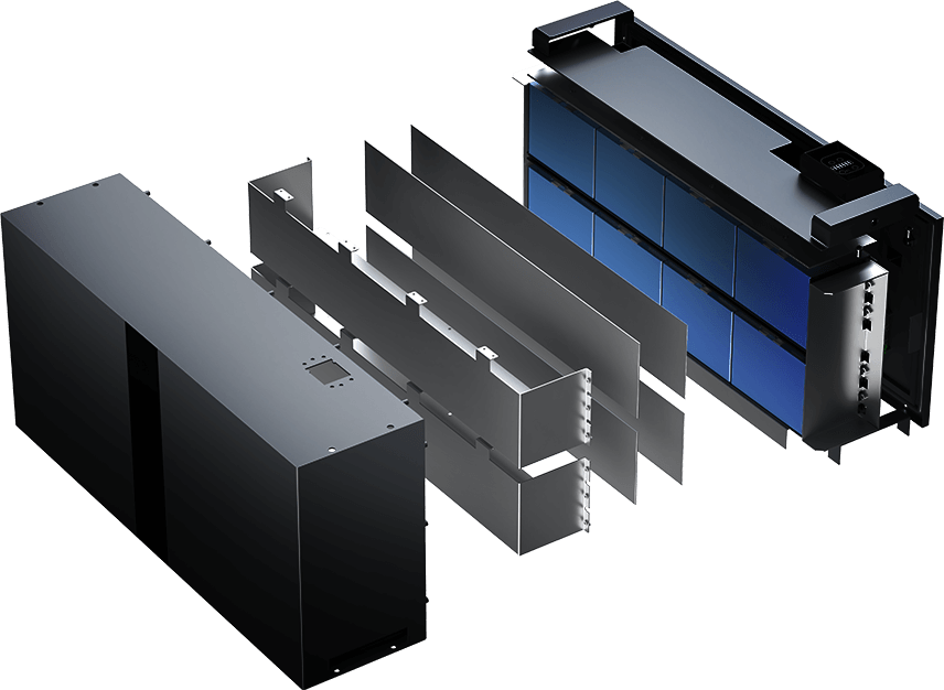 工业级防火外壳+ 锂铁磷酸盐(LiFePO4)电芯,安全稳定。