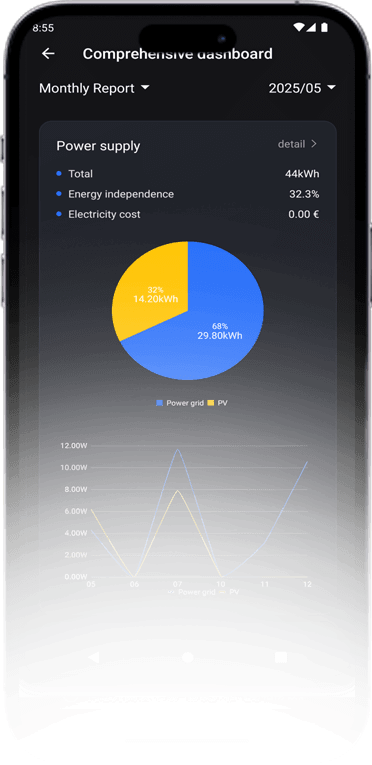 搭载强大算法中心,可实现热泵、储能一体机、充电桩的精准负载识别与智能调控,让每一度电都物尽其用
